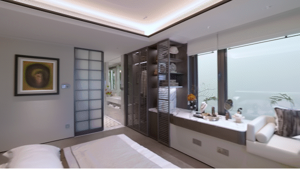 上叠主空间分布于3-4层 ,三卧室布局功能清晰,其中主卧更拥有270°全景落地窗 (北向次卧为270°全景飘窗) 视野,采光、视野极佳。