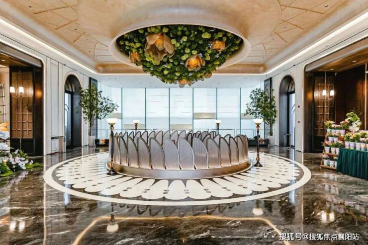 进门之后,恍若走进一幅立体绽放的画卷。 地面采用了 石材拼花, 纹理如行云流水般舒展,在光影交错间勾勒出 低调的奢华。