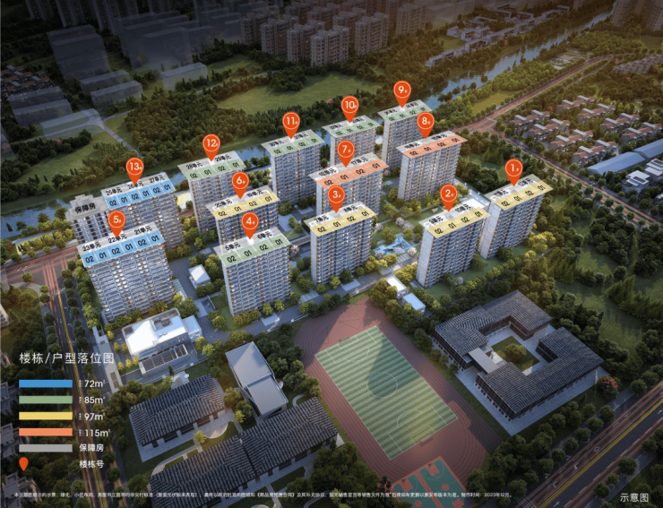 项目精准覆盖刚需、刚改、改善全周期需求,主力推出 建面约 72㎡两房、85㎡三房、97㎡三房、115㎡四房 ,全系全明通透、方正格局、高得房率(78%-82%),精装现房交付、即买即住: