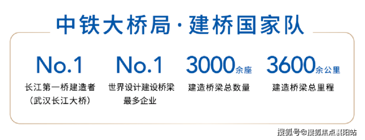 中铁大桥局集团 前身为1953年修建万里长江第一桥“武汉长江大桥”经政务院批准成立的铁道部大桥局,是中国桥梁事业的领军者,是世界上设计桥梁最多的企业,中国“一带一路”走向世界的“建桥国家队”。在世界范围内建造桥梁总数超过3000 座,建造桥梁总里程超过3600余公里,建桥技术国际领先。近70年来,公司曾先后参与建设了杭州湾跨海大桥、东海大桥、港珠澳大桥、武汉长江大桥、南京长江大桥等一系列知名桥梁,一直引领着中国桥梁事业发展方向,以建桥的心志去建造住宅。