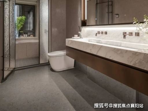 卫浴: 杜拉维特智能马桶、浴缸、台盆,汉斯格雅龙头、花洒,干湿分离设计,恒温花洒、智能镜柜、石材地面,奢华舒适。
