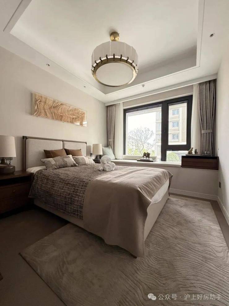双套房设计,是这款户型的点睛之笔——主卧带独立卫生间+衣帽间,次卧带衣帽间+飘窗,让两代家庭都能拥有自己的私密空间,互不干扰,避免了三代同堂的尴尬;主卧空间宽敞,摆放一张king size大床+床头柜+梳妆台,依然绰绰有余,独立卫生间配备浴缸(具体以交付为准),平时可以泡个澡,卸下一天的疲惫,享受私人放松时光;步入式衣帽间,收纳空间充足,衣物、包包、首饰等,都能妥善收纳,彰显主人的品位。