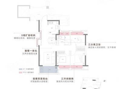 建面约 89㎡三房两厅一卫(映仕户型)—— 刚需优选,小面积大功能