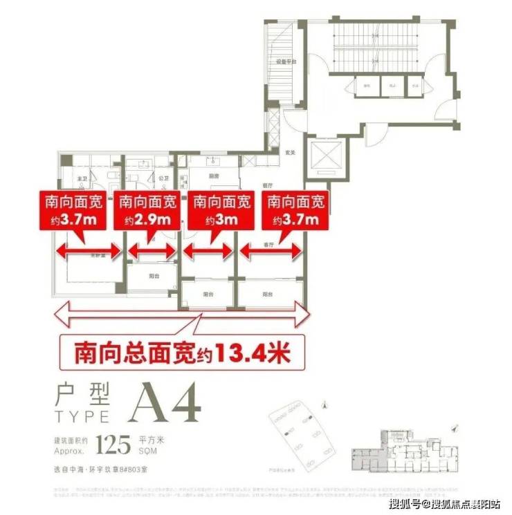 约13.4米四开间朝南面宽!同面积段新规产品普遍只有11米!多出来的2.4米,意味着更多的阳光、更长的日照、更爽的视野!