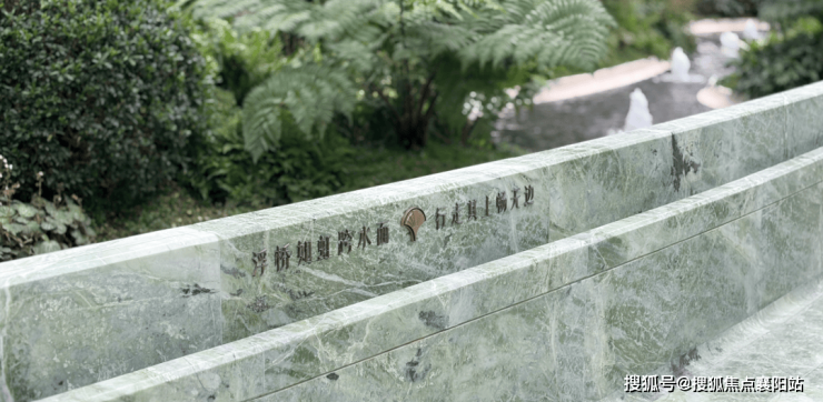继续前行,一座玉石桥横跨水景之上。桥面满铺冷翡翠——这种顶级奢石据说已停止开采,在寻常豪宅中只舍得用作吧台或把手点缀。而在这里,上百位师傅以弧形手工打磨工艺,将整座桥变成一件不可复刻的艺术品。阳光洒下,石纹如冰川凝固、似绿丝带流淌。