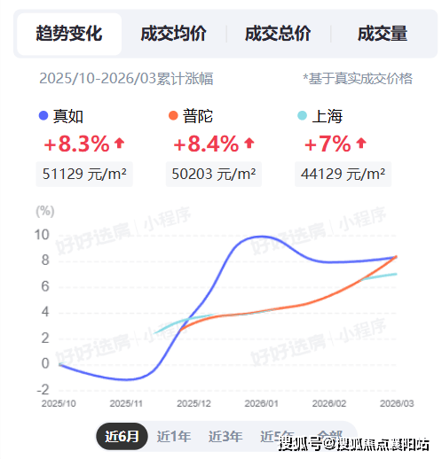 第二件,真如二手量价齐升! 随着金三银四小阳春到来,上海二手房成交日益火爆,单日成交量连续刷新历史记录,真如则呈现量价齐升的势头,板块成交均价大涨8.4%,愈来愈多的购房者认可真如,板块价值还在不断提升!
