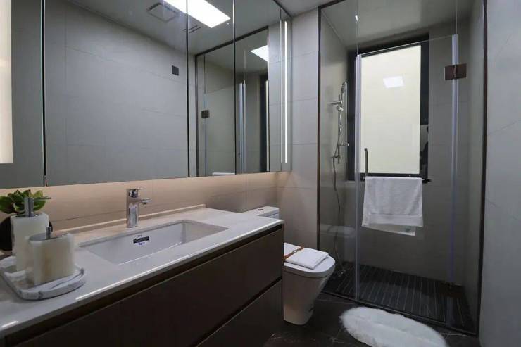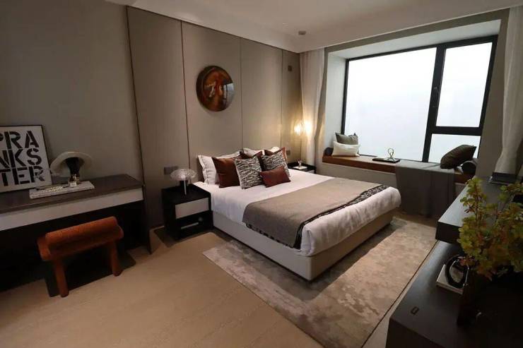 客餐厅相连,客厅 + 次卧南接超大阳台,整个采光面拉到极致。主卧大套房设计,带卫生间 + 飘窗,阔绰空间可以轻松改造出衣帽间。