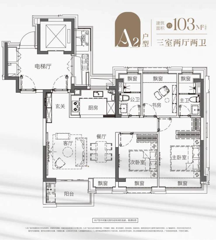 这套 建面约103㎡动静分离户型 打破常规, 兼具三个房间和南向超阔面宽的横厅, 以此承载从二人世界到三代同堂的全生命周期需求。