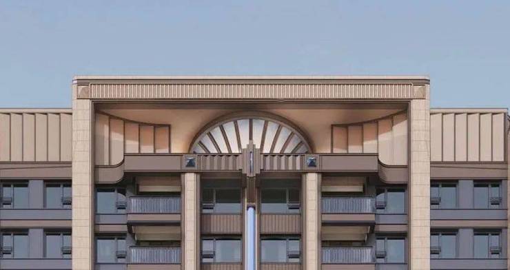初览海阅首府三段式经典建筑立面,其浓郁的海派风情令人震撼,现代工艺与材料扎实而和谐相融。基座部分采用石材及铝板、不锈钢等高品质材料,主体立面以竖向线条为框架,搭配铝板,展现出端庄大气、典雅精致之美。