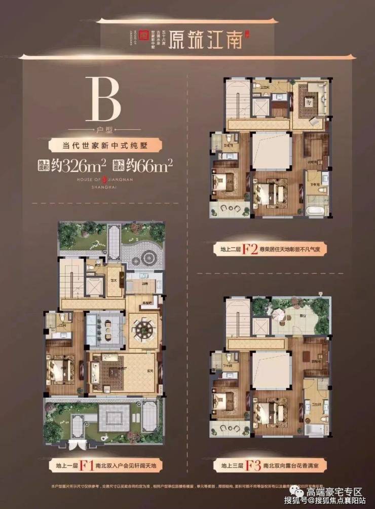 本项目更大一点的户型如326平更是如此,相比225平,更做到了大面宽设计,在户型中间处设有庭院,南向、北向都可享受采光、通风效果。