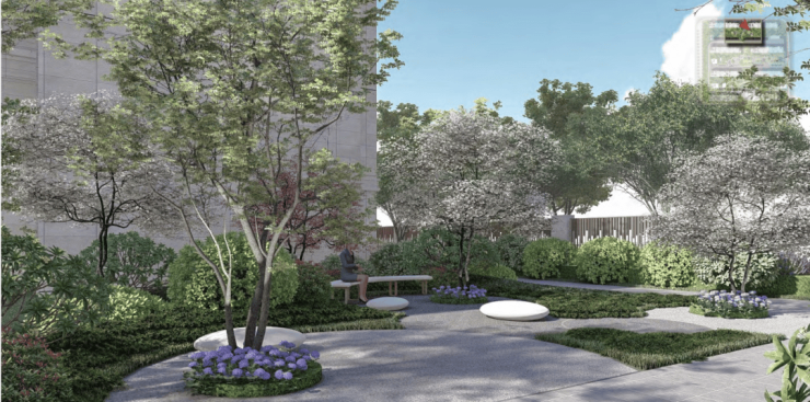 「大名城·映园」园林景观以“璀璨星城,繁星映园”为主题规划广阔绿地空间,将园区每一处都延伸出不同理念分区设计,打造双轴双环七景,给予社区四季变幻的鲜氧秘境;定制多重归家礼序,让归家成为一场行走于星空之上的风景之旅。