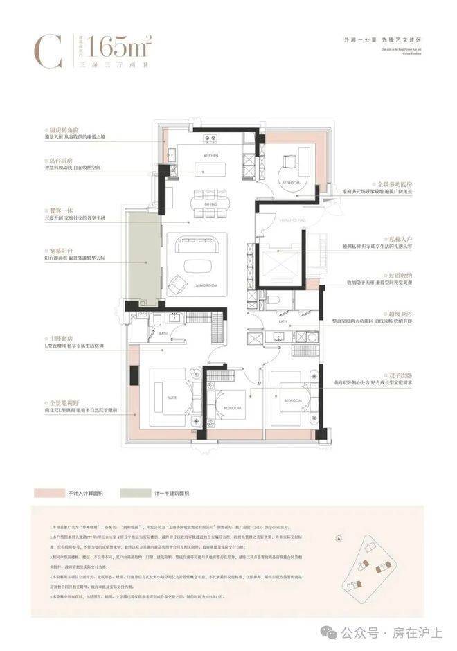 因此,外滩瑞府在建面约165㎡户型中创新推出三四房灵活定制体系。