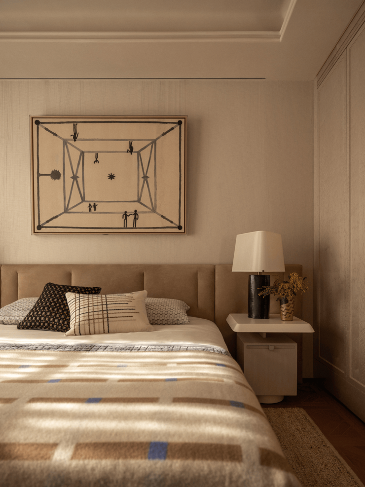 地面墙面 : 天然石材、高端瓷砖、皮革硬包、艺术壁纸 ,融合海派美学与现代质感。