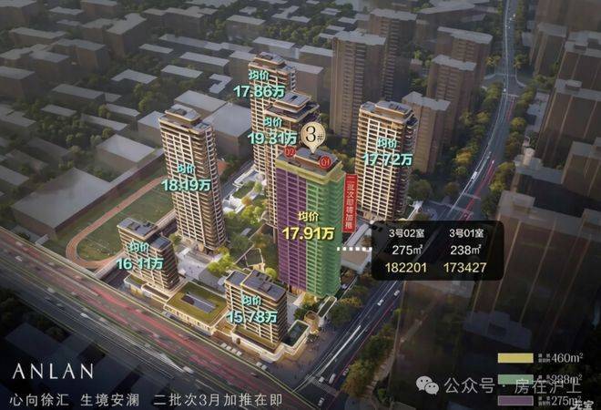 据悉,安澜上海此次二批次加推3号楼,共计51套房源,将推主力建面约238/275㎡大平层,均价179100元/㎡,正在认购!