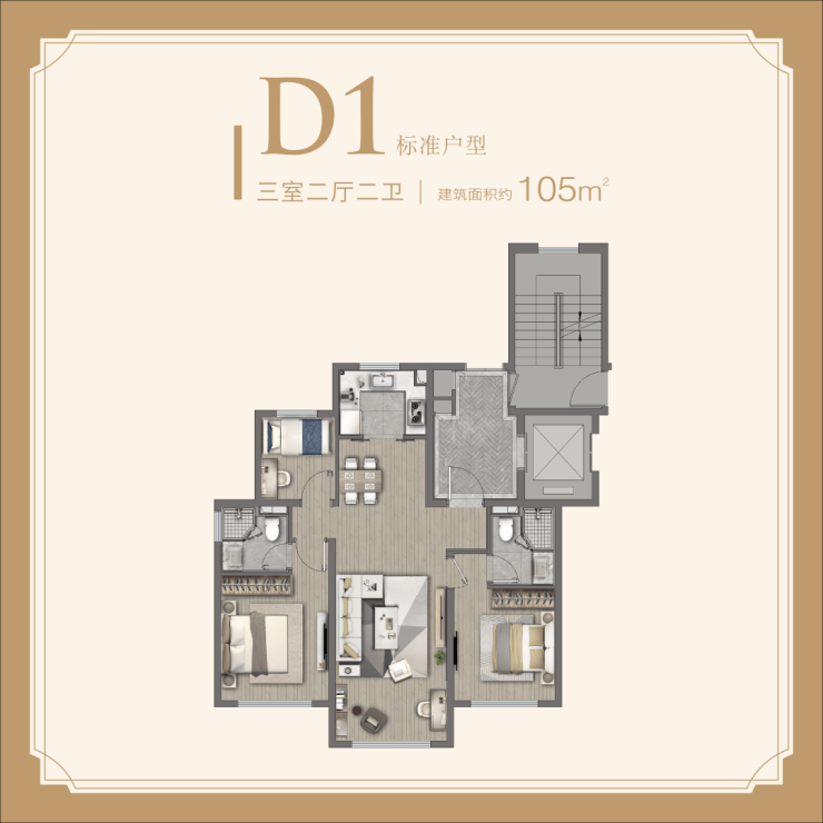 建面约 104-130㎡三房两厅两卫:一步到位的改善首选