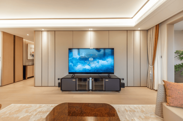 同时,项目为全屋配备了 3M 净水系统,包含前置过滤器、中央净水机、末端直饮机,全方位净化家庭用水,无论是饮用水,还是生活用水,都能得到全面净化,保障家人的饮水健康。项目还采用了同层排水、墙面隔音棉、浮筑楼板、三层双银 Low-E 中空玻璃等多重隔音工艺,能够有效隔绝室外噪音、邻里噪音、排水噪音,室内噪音控制在 35 分贝以内,相当于图书馆的噪音水平,为业主营造了极致安静的居住环境,即便是身处繁华的城市核心,也能拥有安静的睡眠环境。