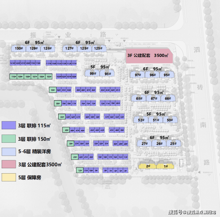 根据设计方案显示,项目 拟建8幢5-6F的洋房、23幢3F的低层联排以及1幢3F的公共服务设施用房。