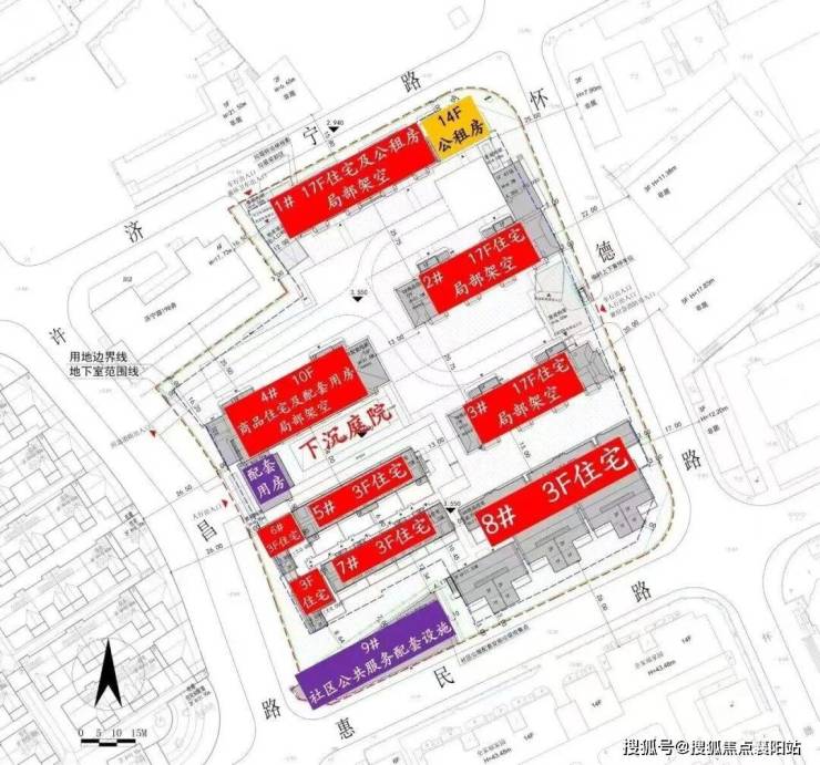 社区内部计划设置下沉式庭院、景观构架等设施,并全面实现人车分流。