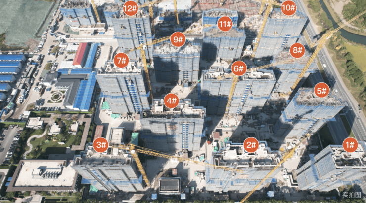 目前1#、2#、3#、4#、6#、7#结构均已完成,5# 15层墙柱施工中,16层梁板施工中;8# 13层墙柱施工中;9# 12层柱子合模;10# 屋面层施工中;11# 9层顶板施工中;12#花架浇筑!