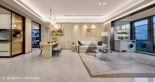 建筑面积约99㎡墅级洋房,约3.1米层高,远超同类产品;超20㎡客餐一体欢聚双厅,餐厅可承载六人圆桌,家人用餐更添温情;三开间朝南飞机户型,零走道设计,空间方正;U型厨房,高效操作,实现洗切烹一气呵成;主卧尊贵套房,将空间感与功能性完美平衡。