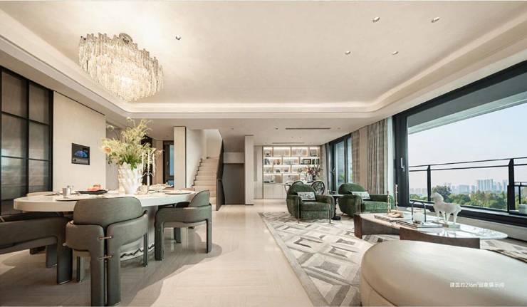 户型亮点 :叠墅层高 3.3 米,客厅面宽约 6.1 米,整面落地窗,采光通风极佳,居住体验媲美别墅;