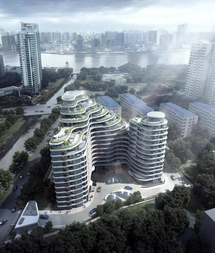 大楼外立面采用前瞻性的 退台式波浪线型设计 ,巧妙地将江景与建筑相融合,