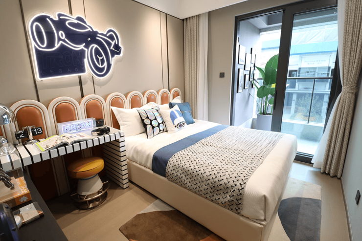 同样是3房2卫的配置,功能性与舒适度兼具。该户型惊艳的地方在于大尺度的景观边厅设计,搭配超大阳台, 营造IMAX级别的客厅景观面, 极具阔绰感!