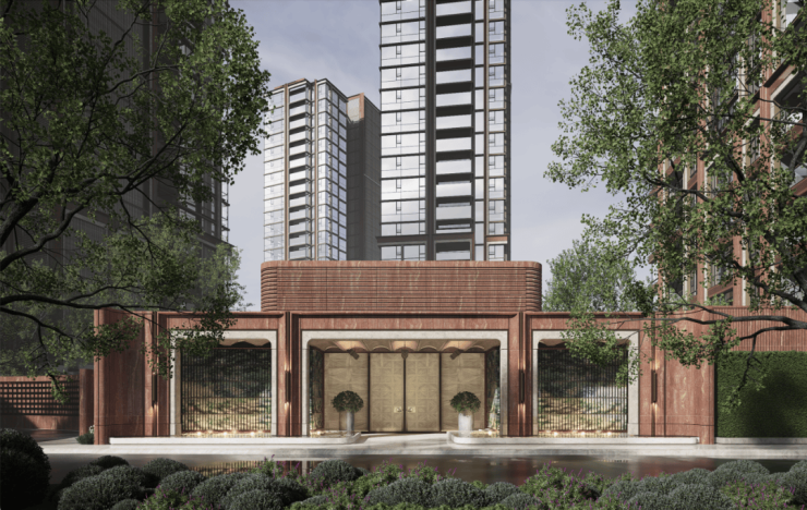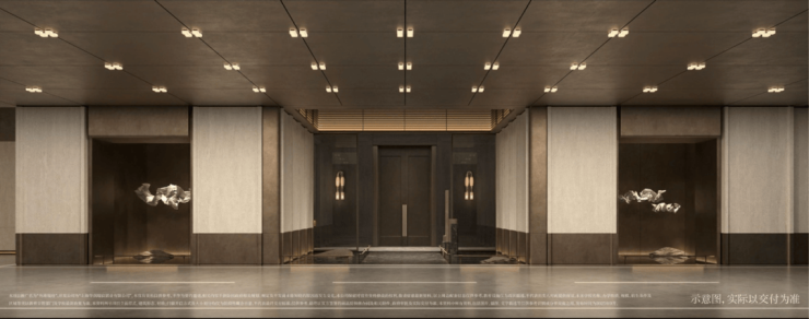 从九龙路起步,在繁花水岸的滨水步道上漫步归家;归家之路在滨水艺境另一侧,是约7000㎡的沉浸式邻里风貌街区,融合党群服务与邻里综合体业态,可在归家路途中感受精致烟火气;之后抵达九龙路归家主入口的河岸艺术大堂,两条地上细分动线,藏着不同的归家意趣:一条从主入口艺术大堂步入,沿着风雨连廊穿越花园小径,光影透过叶片洒落脚边,风携花香漫过肩头,仿佛逛完一场印象艺术展;另一条则经风雨连廊直抵“艺术品展列空间”泛会所,或许邂逅正在展出的私人藏品,在艺术氛围中完成圈层身份的过渡。最后步入电梯厅,半圆弧形天花吊顶暗合“天圆地方” 东方哲学,让归家终拾恢弘而宁静的仪式感。