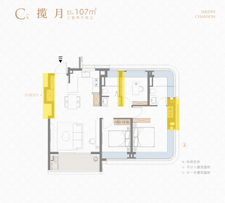 这个问题,象屿也解决了: 通过S墙的设计,预留的衣柜的凹龛,未来可供业主全屋定制做柜子使用,解决日常收纳问题。