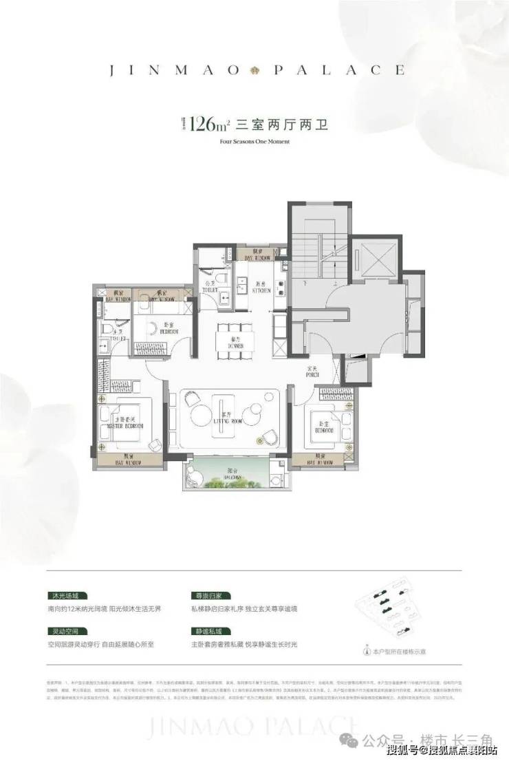 ● 建面约126㎡横厅3房:一步到位顶奢3房,全杨浦没有竞品。