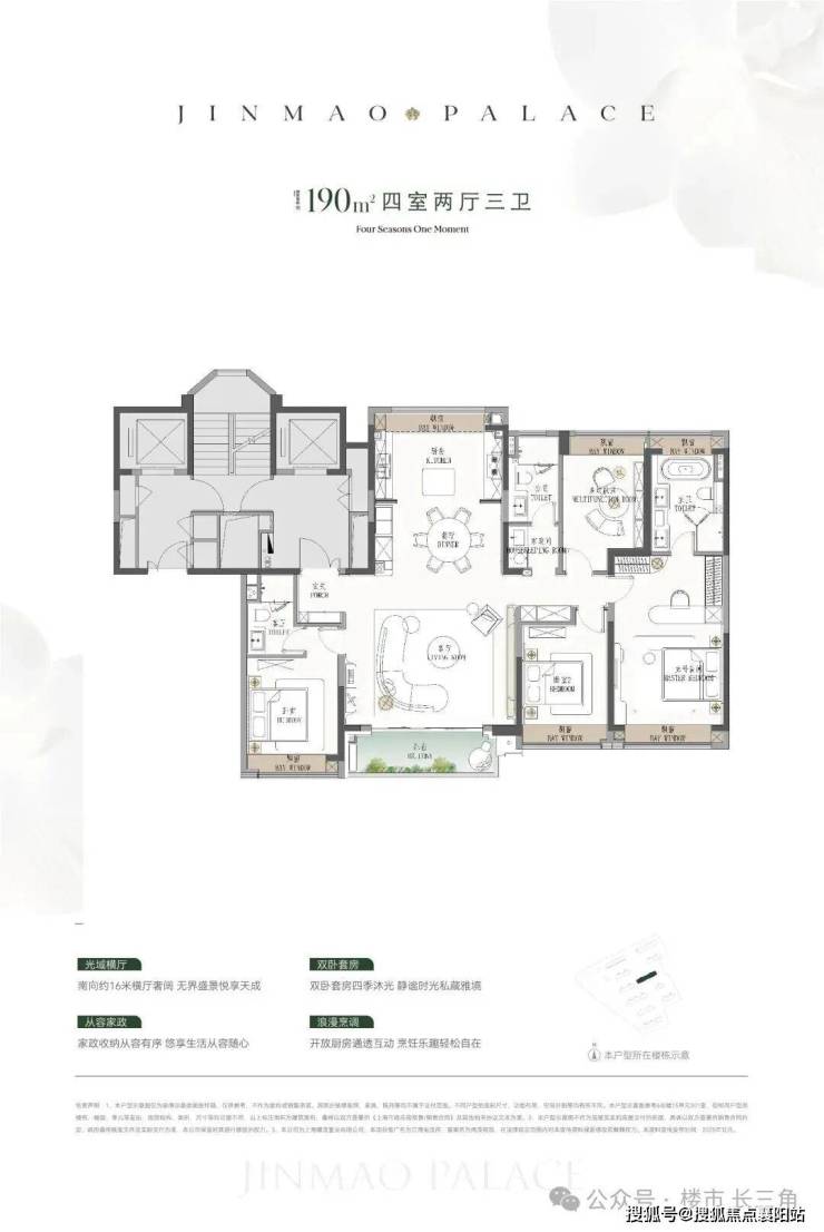 ● 建面约190㎡4房:楼王位置的顶奢大平层,同价位段在杨浦只能买到约120㎡3房!