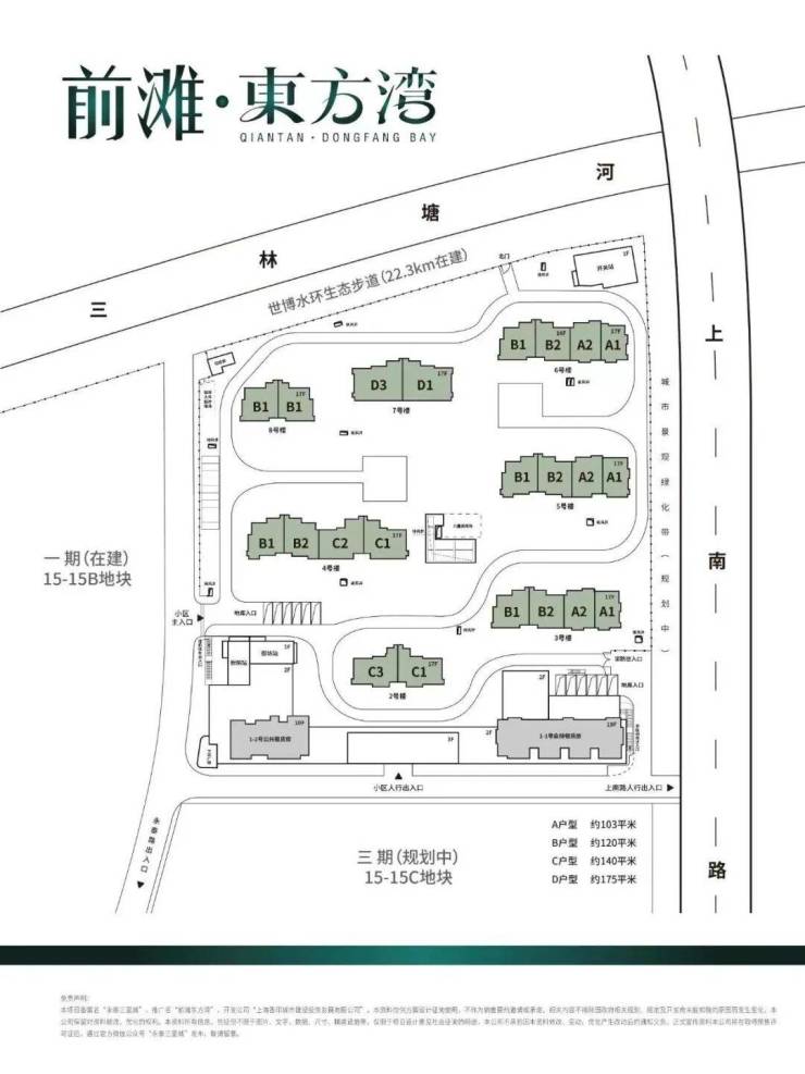 据悉: 1站前滩,浦东三林永泰三里城二期【前滩·东方湾】将推建面约103-175㎡3-4房,户型图发布,样板间已开放,即将入市!