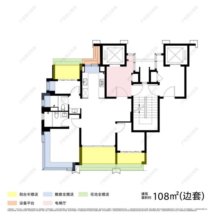 建面约98㎡边套一梯一户+全明独立前厅 ,购房者获得的是一个独立前室,内外双玄关的配置,家的空间,持续延伸。