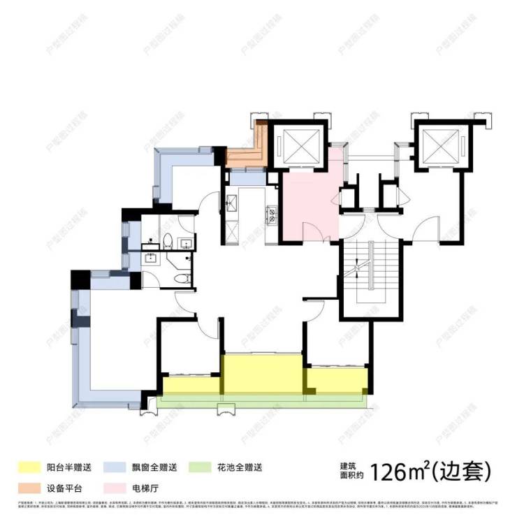 建面约108㎡-126㎡户型,时下流行的三阳台产品。