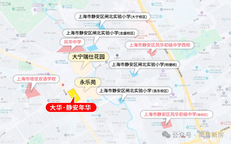 教育资源堪称板块 “王牌”,项目周边全龄名校环伺,直线 541 米即达闸北实验小学明德校区(公办一梯队),步行 1046 米可达风华初级中学西校(公办强校),周边还有大宁国际学校、扬波外国语小学等优质学府,从幼儿园到初中一站式教育闭环,彻底解决改善家庭的教育焦虑。虽新房不承诺学区,但项目与名校为邻,教育氛围浓厚,是板块内公认的教育资源高地。