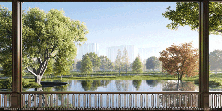 同时,以“内外一体化造园”理念打破社区与城市的界限,将长约1公里水岸公园与约11.4公顷生态湿地融为一体,成为可赏可游的“自然后花园”。