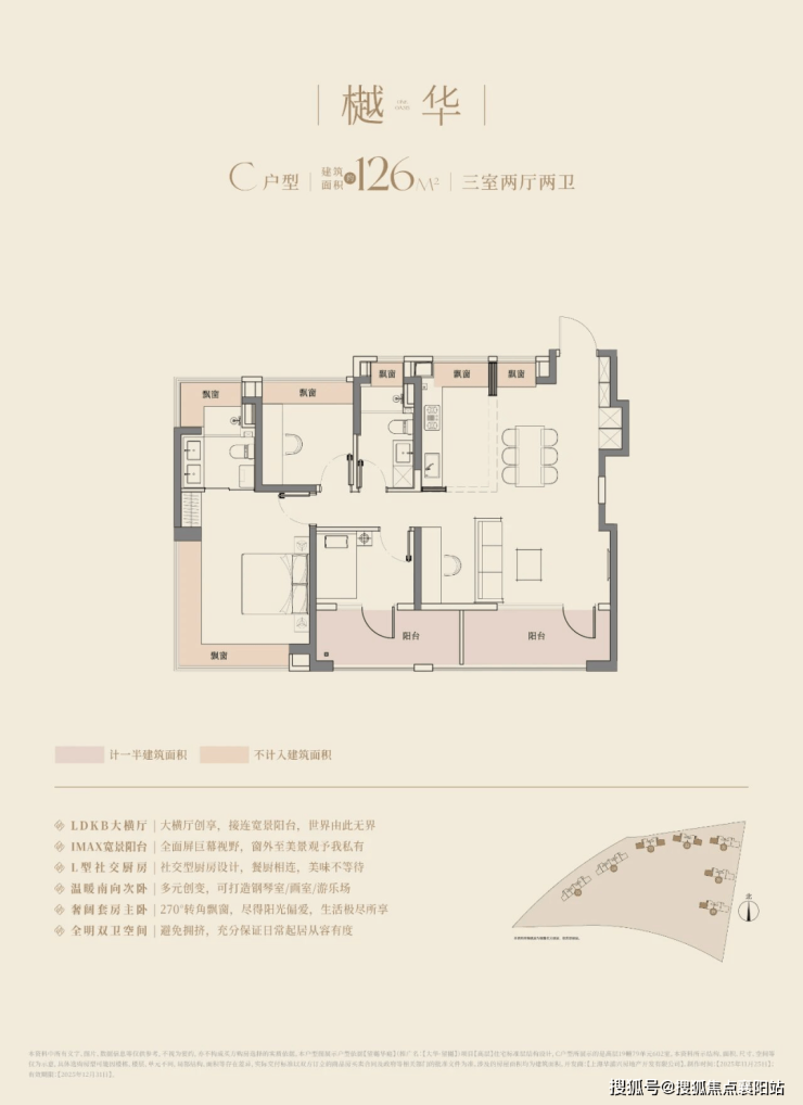 (三)建面约 128㎡ 三室两厅两卫:改善主力,IMAX 巨幕横厅