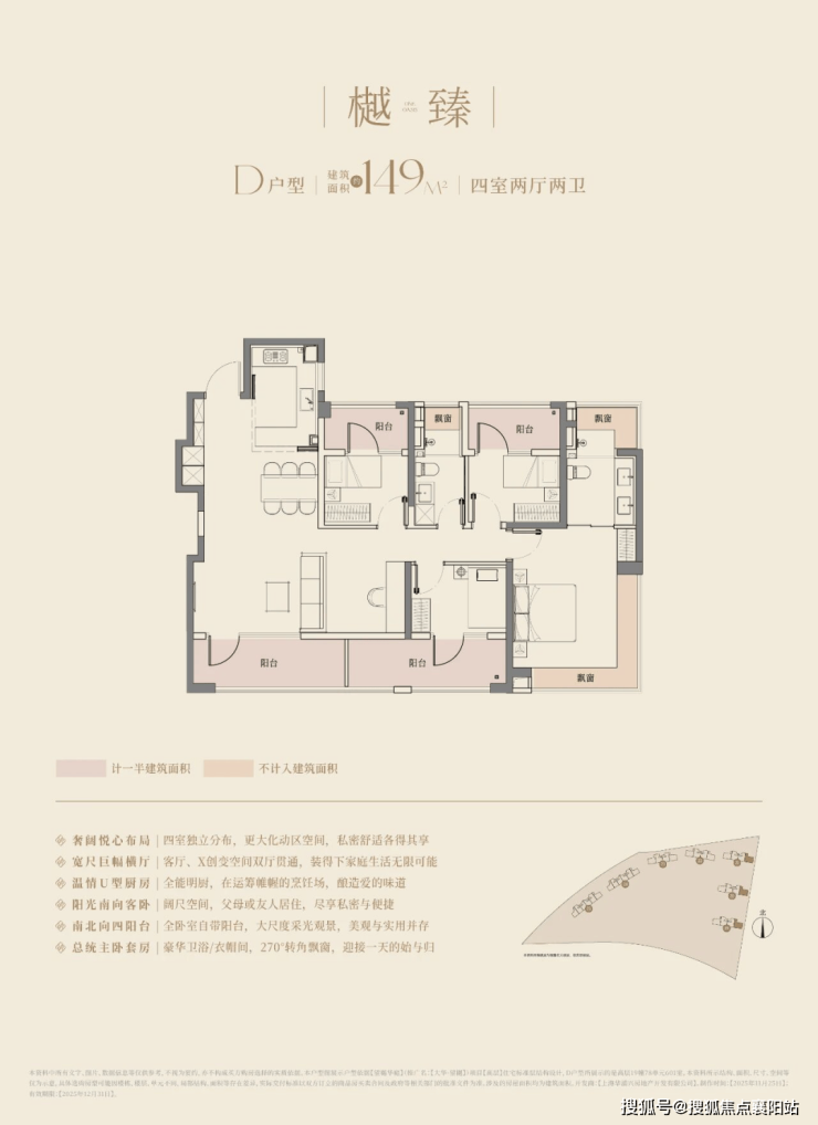 (四)建面约 149㎡ 四室两厅两卫:顶配改善,四开间朝南