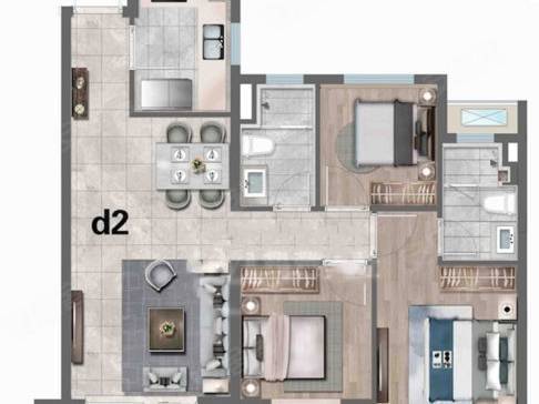 总价约 210-260 万,横厅设计、约 6 米宽景阳台,采光面拉满。主卧套房 + 双次卧布局,动静分区明确,空间尺度更阔绰,适合追求品质的刚改家庭,一步到位无需置换。