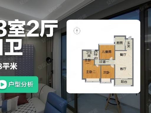 100㎡三房户型为二胎家庭、改善型家庭量身打造, 空间更宽敞、功能更完善 ,配备双卫设计,彻底解决家庭早高峰抢卫生间的烦恼。户型方正通透,三开间朝南,采光面充足,室内常年阳光满溢;主卧套房设计,带独立卫生间与观景飘窗,保障主人私密性与舒适度;两间次卧空间宽敞,可分别作为两个孩子的卧室,或一间儿童房、一间书房 / 老人房,满足二胎家庭全周期居住需求;客餐连通阳台,公共空间开阔,家人互动、休闲娱乐更自在;双卫设计均采用干湿分离,干净卫生,提升生活效率。