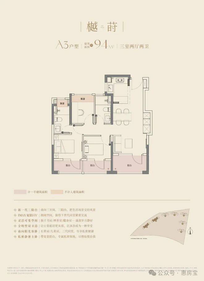经典动静分离户型,预留分户“S”墙设计,三开间朝南+双阳台,阳台合仅计算一半建筑面积,主卧以及主卫附赠270°转角飘窗;✔✔大华·望樾售楼处电话☎:400-833-6309【欢迎预约】