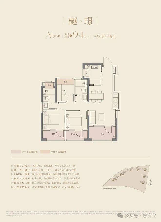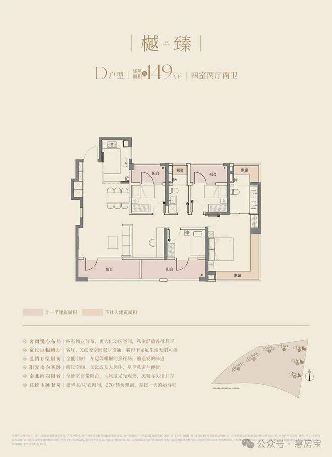 经典动静分离户型,4.5开间朝南+南北四阳台,阳合仅计算一半建筑面积,主卧以及主卫附赠270°转角飘窗;✔✔大华·望樾售楼处电话☎:400-833-6309【欢迎预约】