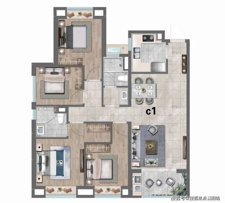 (三)建面约 127-130㎡ 四房两厅两卫 —— 官方终极改善(总价约 290-330 万)