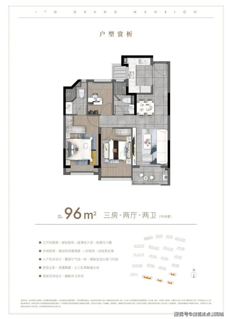 2. 建面约 96㎡三房两厅两卫:主流改善奢阔之选