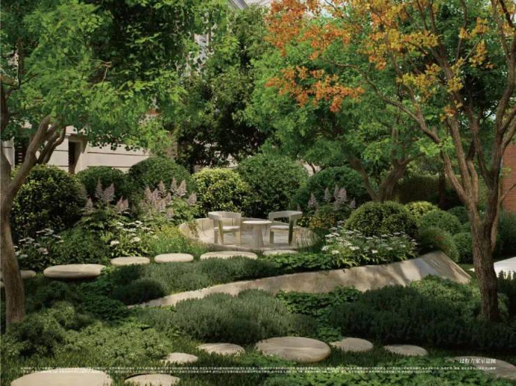 他们在地块硬是腾出了约 3200㎡的中央空间,做了有机分隔,成为专属于业主的私属花园。