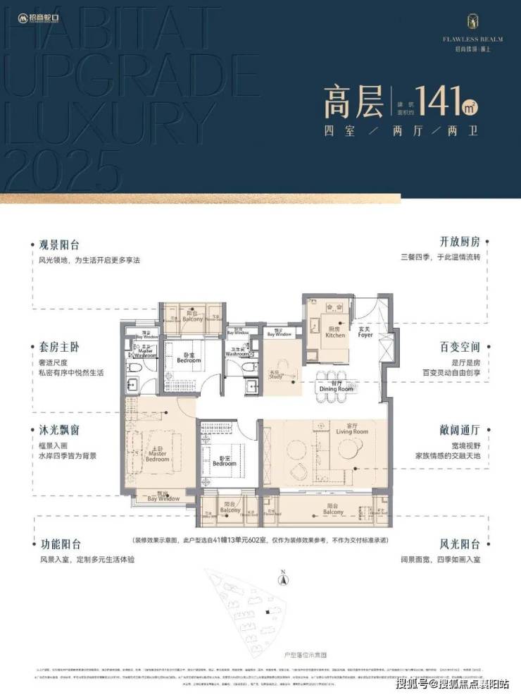 20. 户型设计上,招商臻境经过反复打磨,兼顾空间尺度、采光通风与居住舒适度,精准覆盖高端改善全周期客群需求,主推建面约118-145㎡小高层精装现房、建面约170-200㎡叠墅现房,其中小高层产品得房率超82%,叠墅产品得房率超90%,空间利用率极高,比周边同类项目高出3-5个百分点。