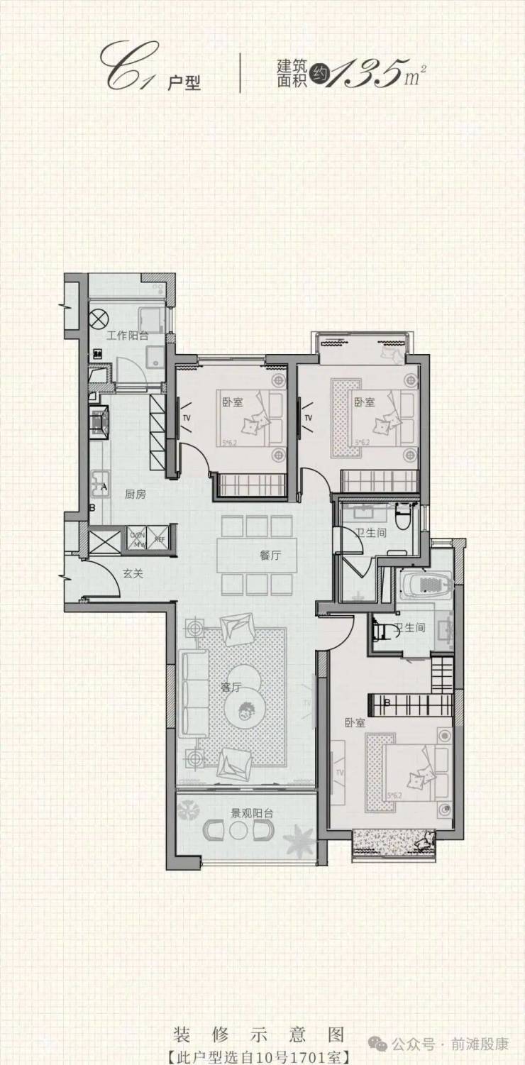 建面约115㎡三室两厅两卫,是改善型家庭的入门之选,空间宽敞、布局合理,兼顾实用性与舒适度,适合三口之家或即将迎来二娃的家庭,既能满足家庭居住需求,又能享受苏河畔的高品质生活体验。很多三口之家,随着孩子长大,或者计划生二娃,原来的小房子已经满足不了居住需求,而这套户型,空间宽敞,布局合理,能完美匹配改善需求,让家人住得更舒适、更舒心,在苏河融景开启更好的居住生活。