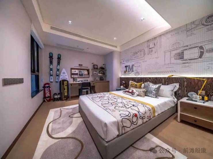 私谧主卧套房设计,配备了独立卫浴和全景飘窗,独立卫浴能保障居者的私密性,不用和家人共用卫生间,避免尴尬,忙碌一天后,能在这里彻底放松身心,洗去一身疲惫;全景飘窗推窗就能看到苏河融景社区的园林美景,让居者在安静中感受自然的美好,闲暇时可以坐在飘窗上看书、观景,享受独处的时光。两个次卧空间宽敞、布局合理,可分别改造成儿童房和老人房,满足不同家庭成员的居住需求。