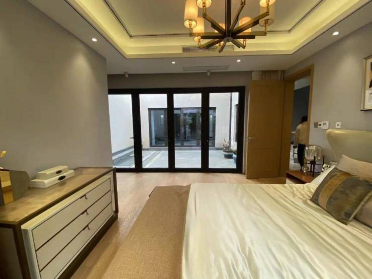 【原筑江南】的面宽达到了8-10米,相比主流别墅户型增加了更多采光面,同时采用落地窗的形式,保证了室内的采光。